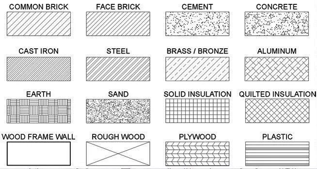 The use of symbols to represent materials in drawings dates back centuries when architects and craftsmen developed unique ways to communicate material choices without relying solely on written descriptions. Over time, these symbols evolved and became standardized to improve efficiency and accuracy in conveying technical information.
